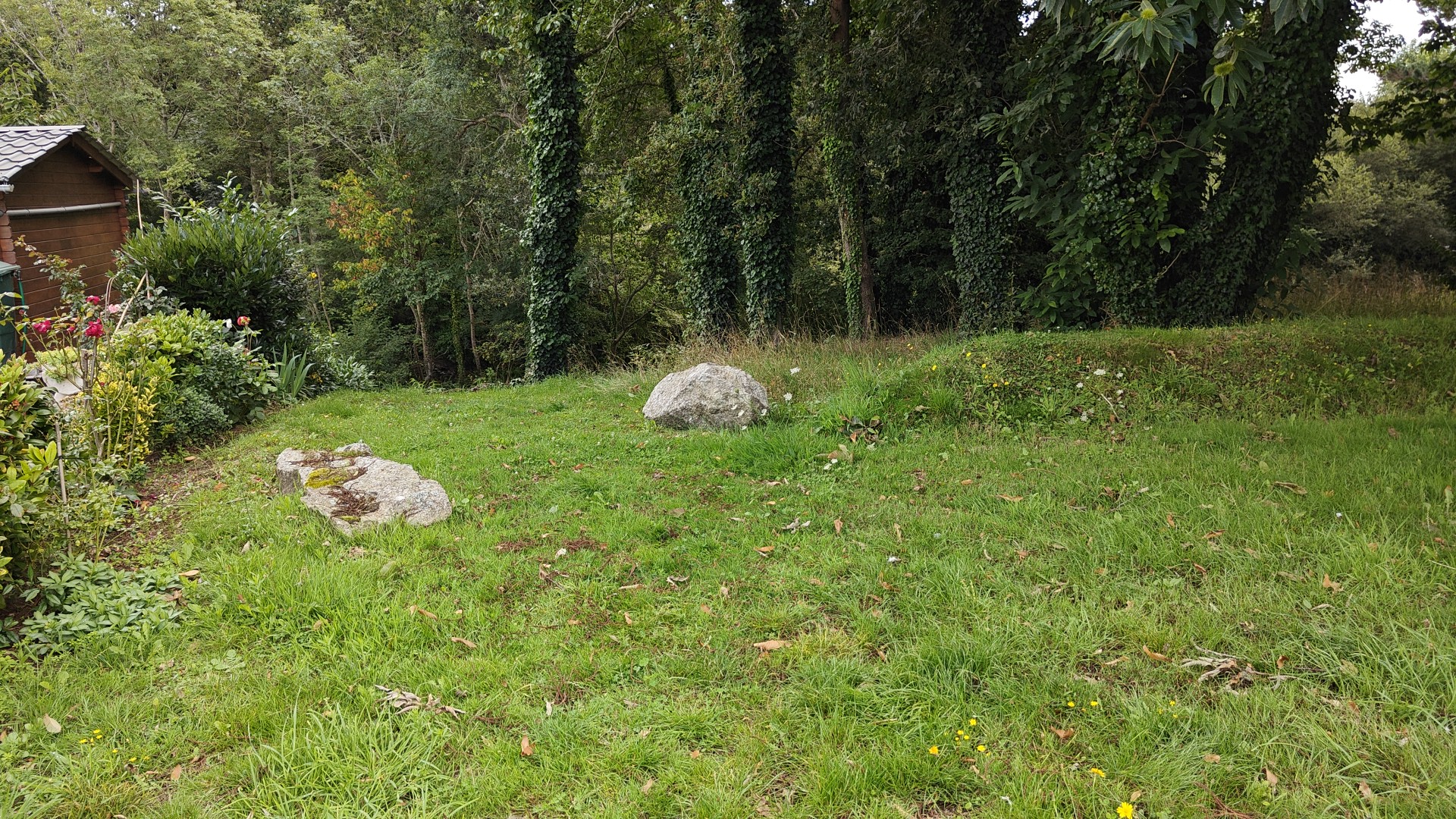 Petit Menhir isolé au bout d'un lotissement. Il est situé entre le 11 et le 13 de la rue des Sternes. Le trajet proposé par Maps à travers le camping de la plage n'est pas le bon.