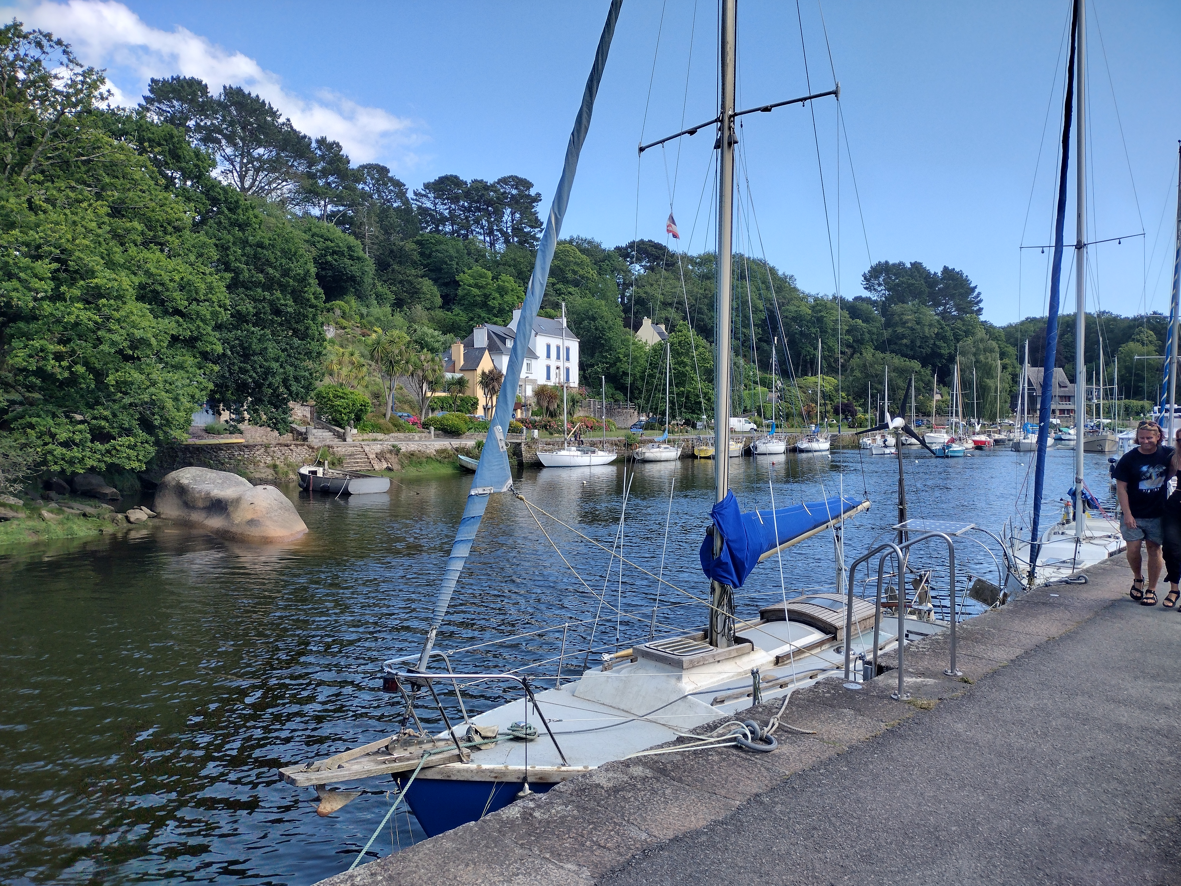Quelle misère !! Un si charmant village avec sa promenade romantique le bord de l'aven, des galeries de peinture, des gourmandises salées et sucrées....Et..et .un horrible port où pourrissent des ex voiliers abandonnés, sales, cassés.. Des centaines de personnes seraient ravies d'avoir une place dans ce petit port, et on y laisse ces carcasses à l'abandon.. mais sortez les du quai, et des bouées !!
